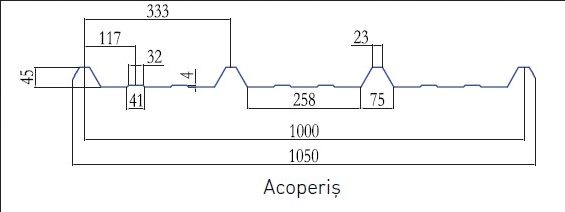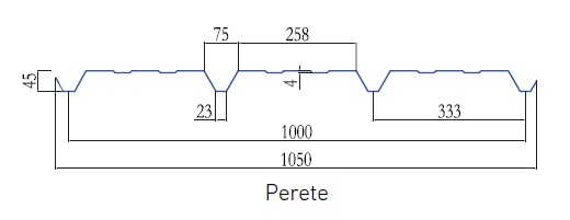 Placa metalică cu profil trapezoidal și înălțimea cutei de 45 mm se recomandă pentru placarea pereților sau realizarea acoperișului construcțiilor din domeniul industrial cât și pentru reabilitarea construcțiilor existente.