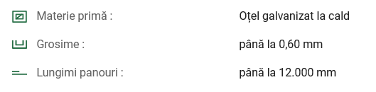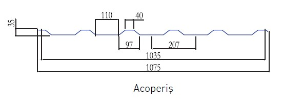 Panoul de tablă cutată JIS35 prezintă o greutate specifică mică, fără efecte negative asupra durabilităţii construcţiei, este incombustibilă şi nu influenţează clasa de rezistenţă la foc a construcţiei.