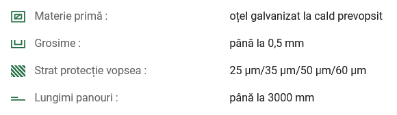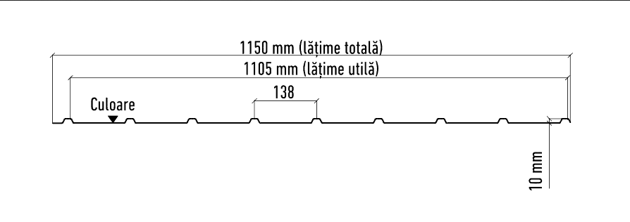 Panourile de tablă cutată W10 cu profil trapezoidal sunt folosite la placări in cazul diferitelor soluții de amenajări la exteriorul, respectiv interiorul construcţiilor, pentru invelitori de acoperișuri montate pe suport continuu, imprejmuiri etc.